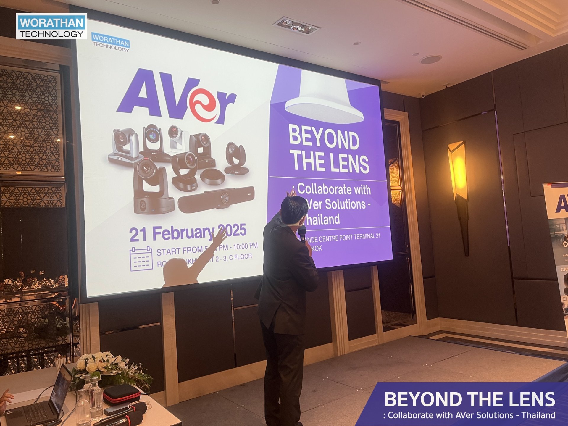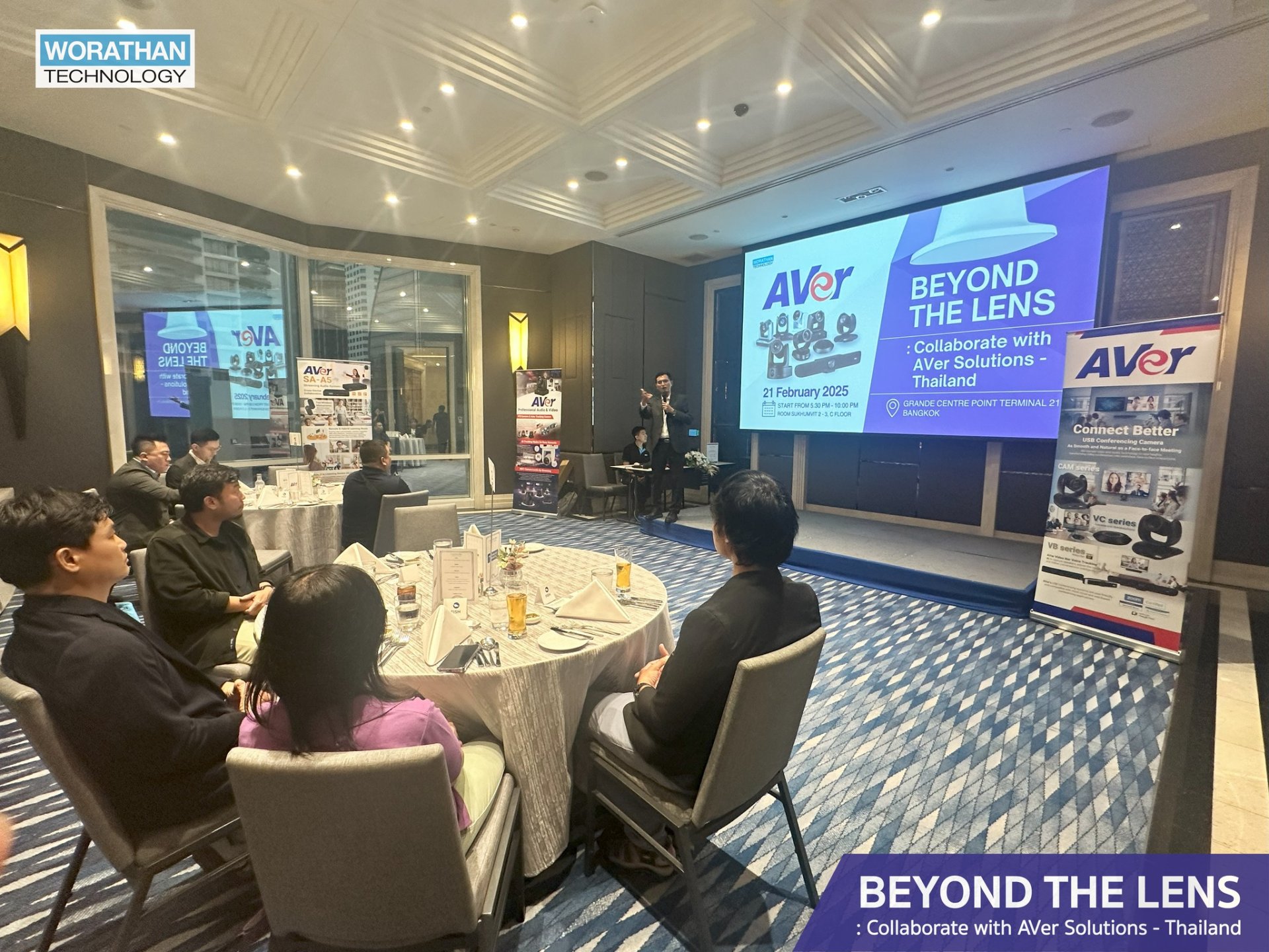 WORATHAN Technology is honored to have been part of BEYOND THE LENS: Collaborate with AVer Solutions Thailand, held on February 21, 2025, at Grande Centre Point Terminal 21, Bangkok. This exclusive gathering brought together industry experts, solution designers, and Pro AV professionals for an insightful seminar and networking dinner.