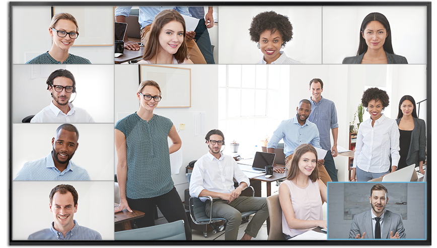 ฟีเจอร์ Smart Gallery ช่วยจัดมุมมองของผู้เข้าร่วมแต่ละคนให้แสดงผลชัดเจนบนหน้าจอปลายทาง ไม่ว่าจะมีผู้เข้าร่วมกี่คน ระบบจะช่วยให้ทุกคนสามารถมองเห็นกันได้อย่างครบถ้วนทุกมุมภาพ มอบประสบการณ์ประชุมคุณภาพสูงทั้งด้านภาพและการใช้งาน
