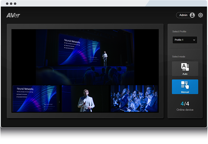 PTZ Link Premium. Embedded.เพียงแค่ก้าวเดียวก็สามารถเปลี่ยนกล้อง PTZ ของ AVer ให้เป็นกล้องติดตามเสียงได้ด้วย PTZ Link Premium ด้วยฟังก์ชัน PTZ Link Premium ในตัว คุณสามารถสร้างกลุ่มอุปกรณ์และช่องไมโครโฟนมากขึ้น พร้อมสวิตช์วิดีโออัตโนมัติที่ผสมผสานกับการติดตามอัตโนมัติจากการตรวจจับมนุษย์ ทำให้เหมาะสำหรับการนำเสนอในสภาพแวดล้อมแบบไฮบริด |